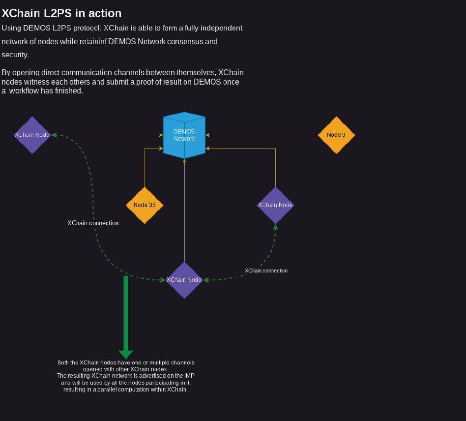 At the same time, XChain workflow requires strong encryption and cryptographic identity verification, thus generating valid and verifiable attestations that can be submitted to the broader DEMOS Network consensus.&#x20;